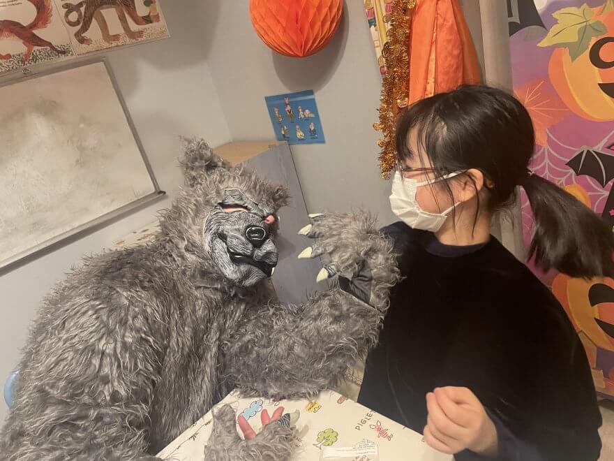 2022年の NEW AGE HALLOWEEN 2022.10.29 お知らせ 2022年10月24日(月曜日)から 28日(金曜日)までが New Age English School のハロウィーン・ウイークでした! 今年のテーマは「狼人間の部屋」でした! 生徒の皆さんも先生達もとても狼人間と共に楽しみました! Share us! 前へ 次へ お知らせ一覧に戻る